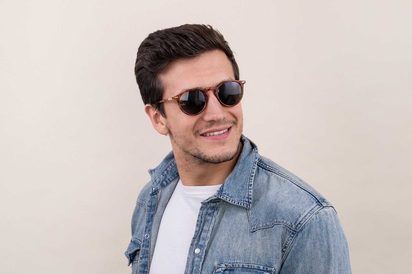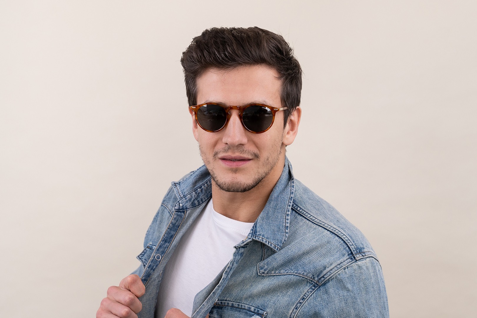 • Kulaté obruby slunečních brýlí jsou ideální volbou, pokud máte hranatý nebo oválný tvar obličeje.
